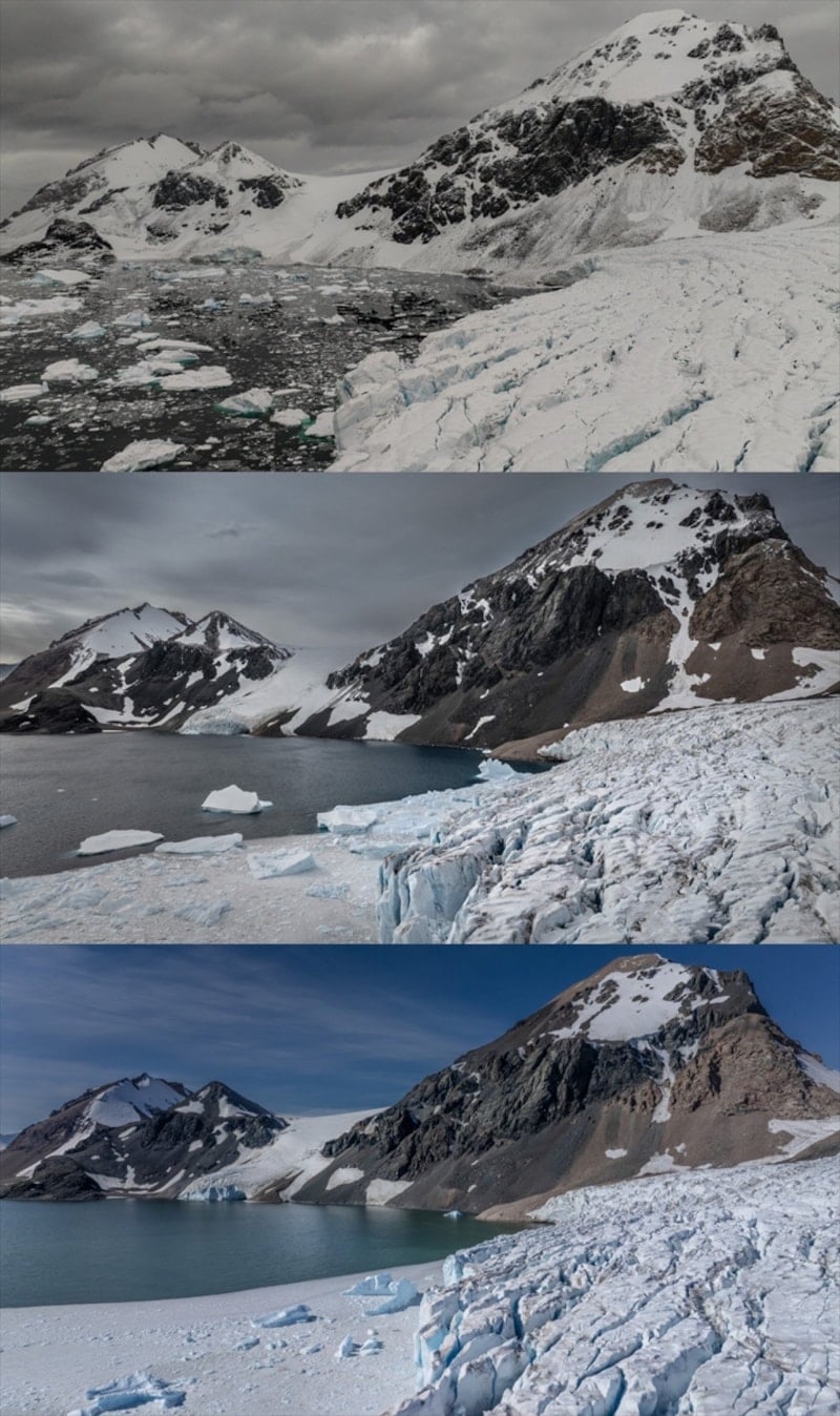 Öte yandan Anadolu Ajansı, Horseshoe Adası’ndaki buzul kaybını son üç yıldır aynı noktadan çekilen fotoğraflarla kayıt altına aldı. Her yıl aynı referans noktalarından alınan görüntüler, buzul alanındaki daralmanın gözle görülür seviyeye ulaştığını ortaya koydu.