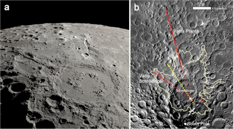 Söz konusu kanyonlar, Vallis Schrödinger ve Vallis Planck olarak adlandırılıyor ve Ay'ın güney kutbuna yakın bir bölgede bulunuyor.