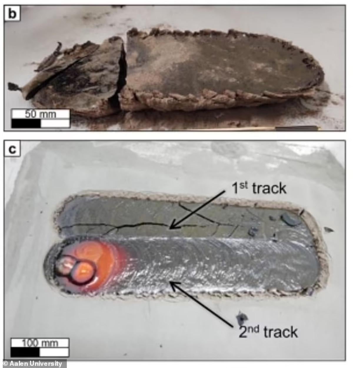 Ekip, Ay tozunun güneş ışınımıyla nasıl sıvılaştırılıp katı, katmanlı bir maddeye dönüştürülebileceğini simüle etmek için bir karbondioksit lazeri aldılar ve toprak yerine geçen maddeyi erittiler.