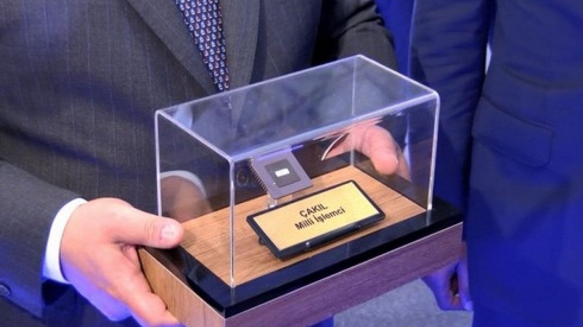 "Burada bizim gurur duyduğumuz bir milli projenin ürünü var. Bu elimde gördüğünüz bizim milli işlemcimiz Çakıl. Biz bu projeyi TÜBİTAK BİLGEM ve ASELSAN olarak beraber gerçekleştirdik. Türkiye'nin ilk yerli ve milli olarak tasarlanmış işlemcisini elimizde tutuyoruz. Burada bu işlemciyi test etmiş olduk.