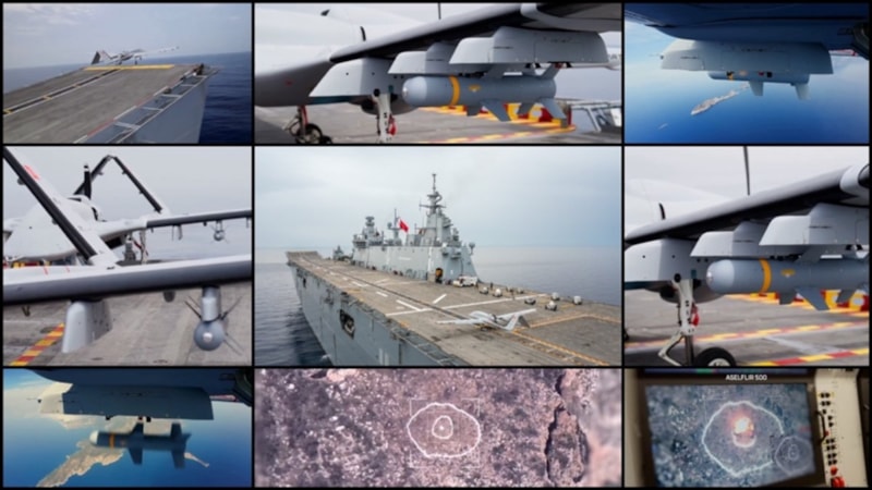 TCG Anadolu gemisinden havalanan Bayraktar TB3 SİHA'lar, ASELSAN'ın geliştirdiği yerli elektro-optik sistem ASELFLIR-500 ve CATS'i kullanarak test kapsamında belirlenen hedefi MAM-L mühimmatıyla tam isabetle vurdu.
