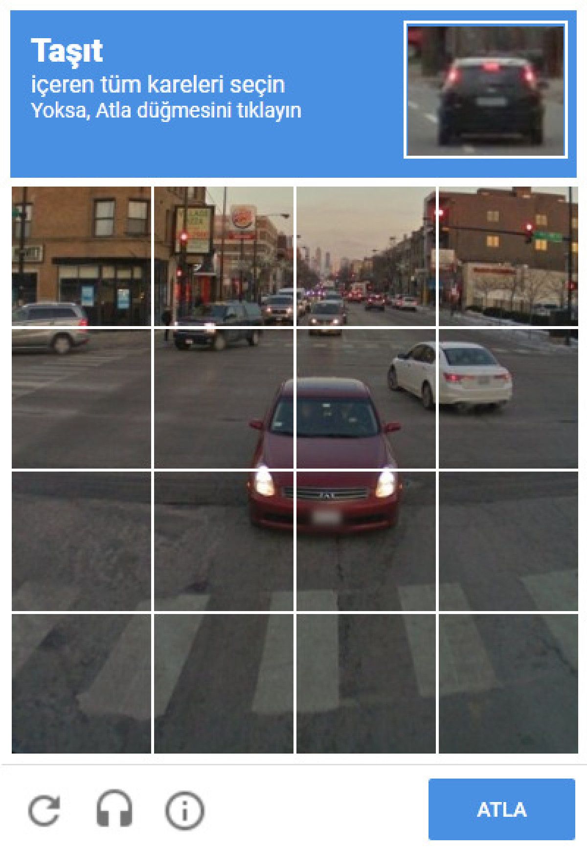 Bunu genellikle "trafik lambasını işaretle" veya "arabaları seç" gibi testlerle yaparsınız.