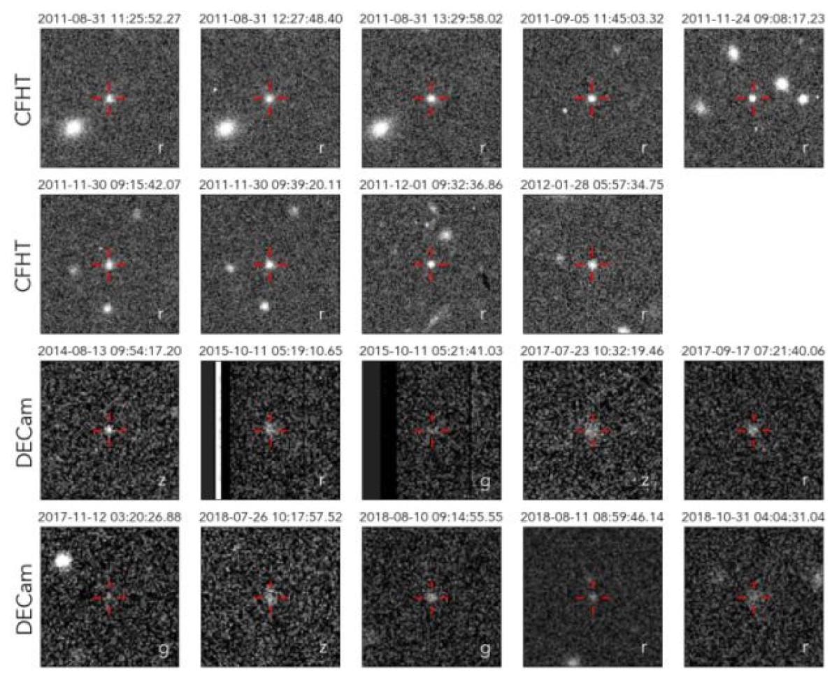 "2017 OF 201"i arşiv verilerinde bularak, 2011 ile 2018 yılları arasında toplam 19 kez gözlemlemeyi başardılar.