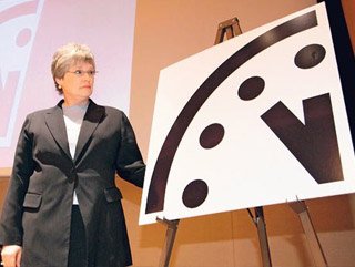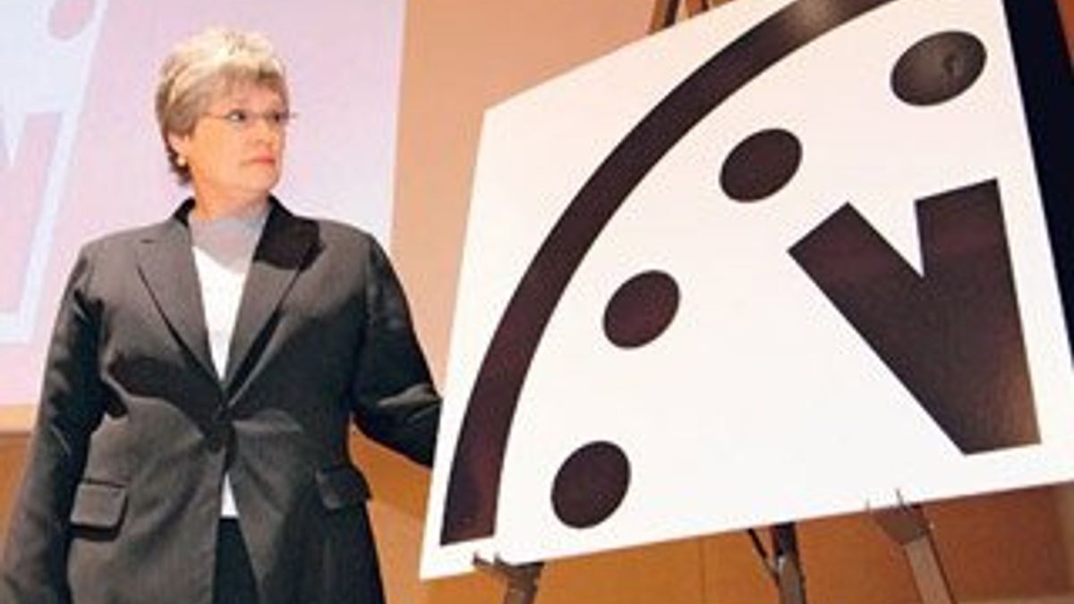 "Akrep 12.00'yi gösterdiğinde her şey için çok geç olacak" diyen bilim adamlarının saatine göre dünyanın sonunda üç dakika kaldı. Riskin en büyük sebepleriyse atom silahlarının kullanılabileceği savaş riskinin artması ve küresel iklim değişikliği.