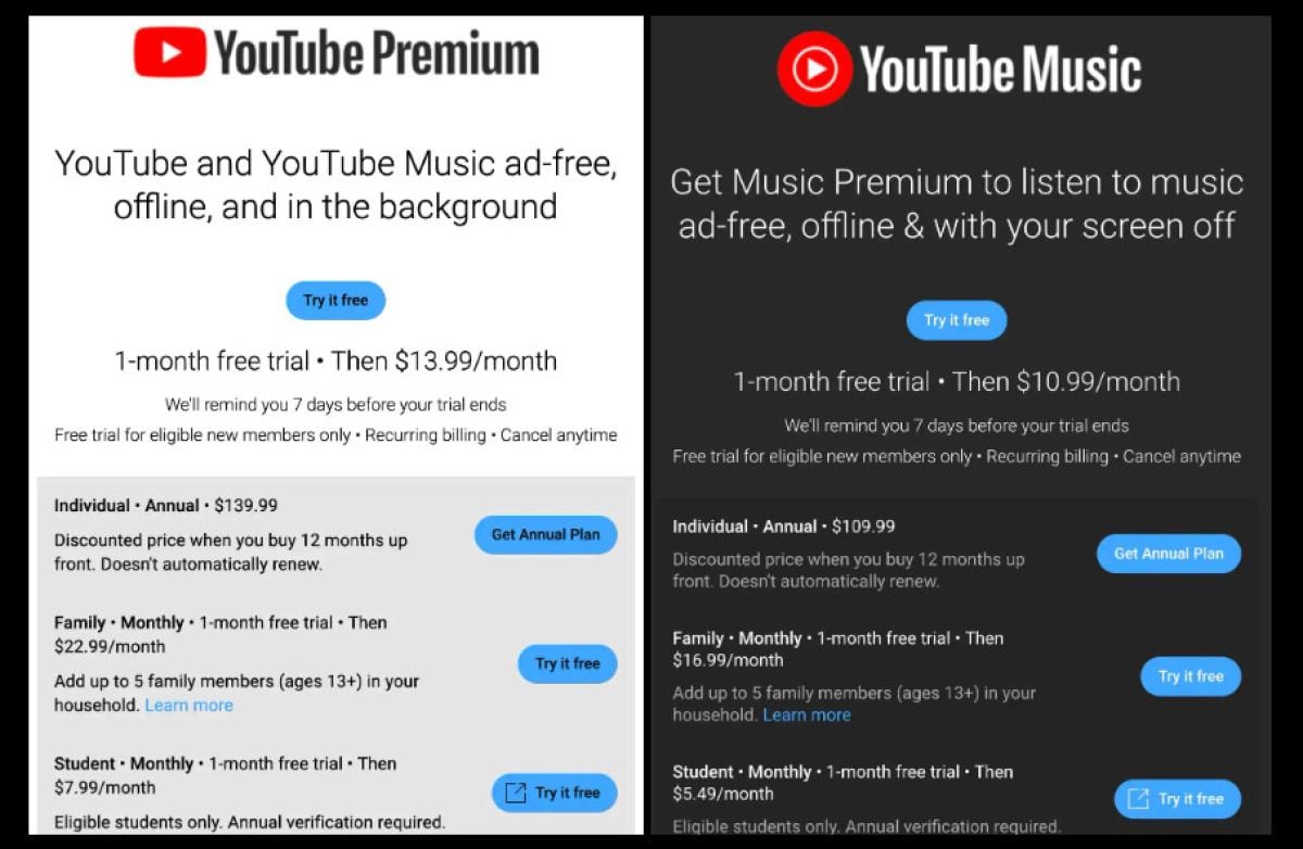 YouTube, YouTube Premium'un (eski adıyla "Red") fiyatını en son 2018'de YouTube Music'in lansmanda artırmıştı.