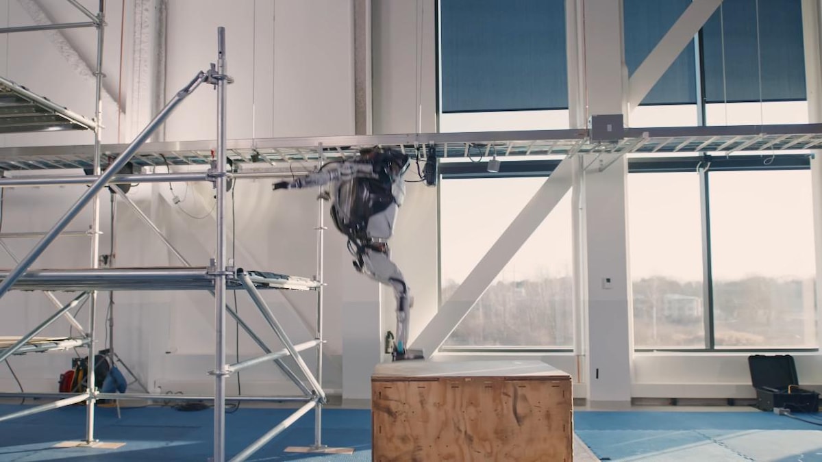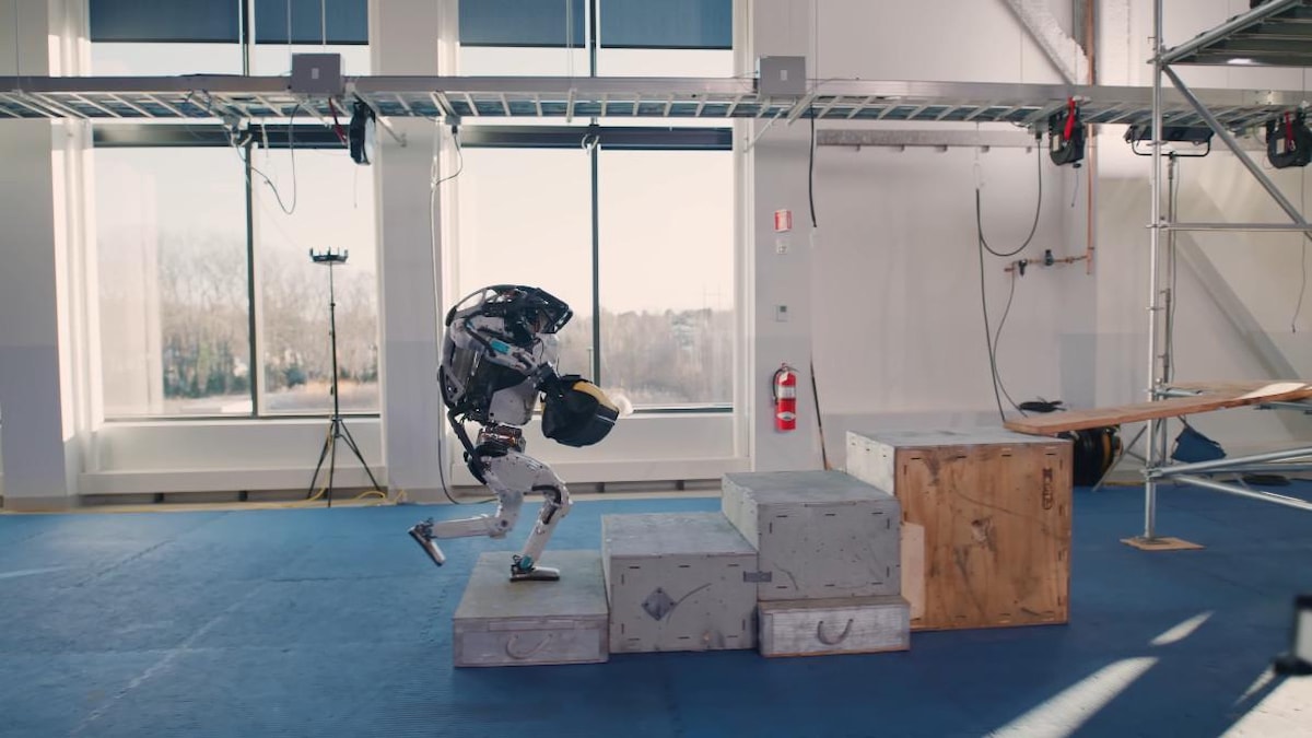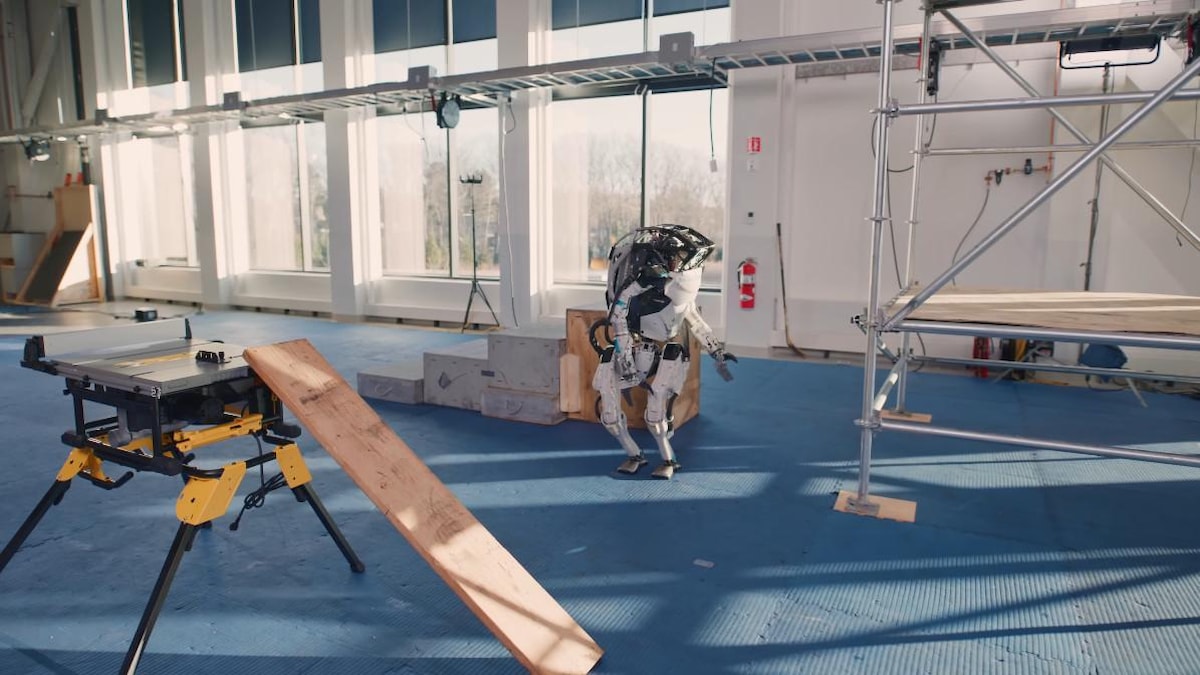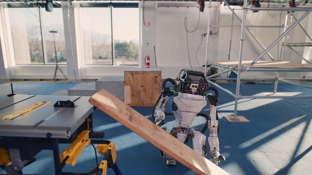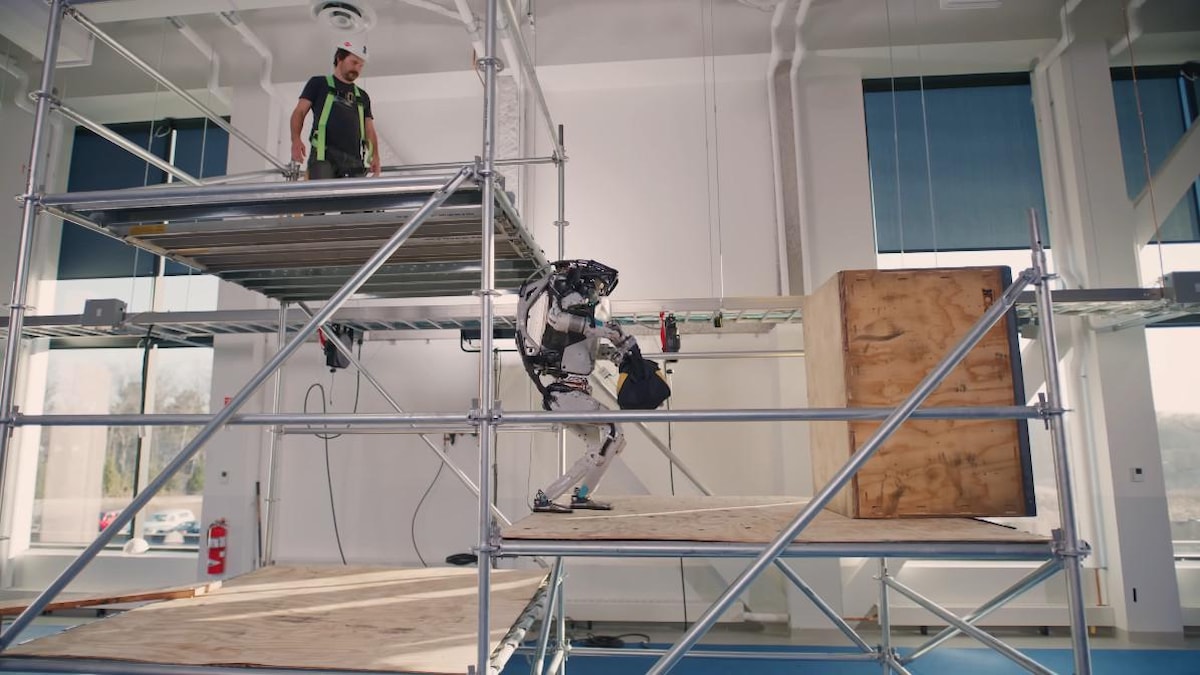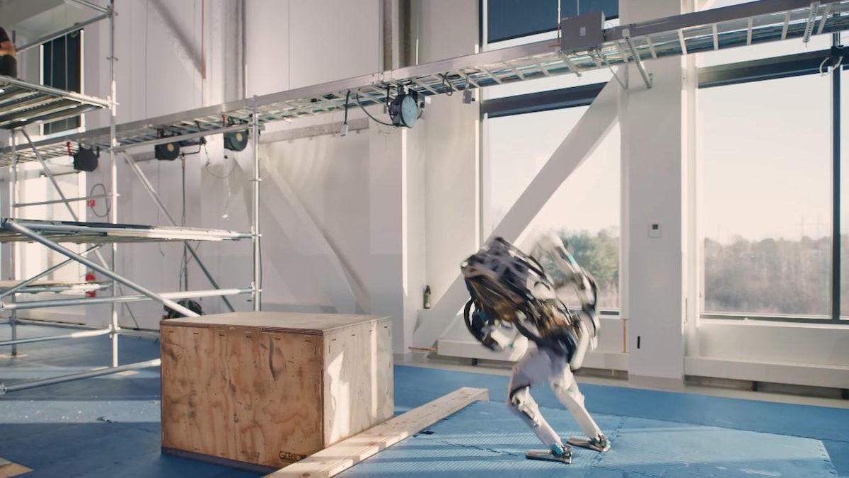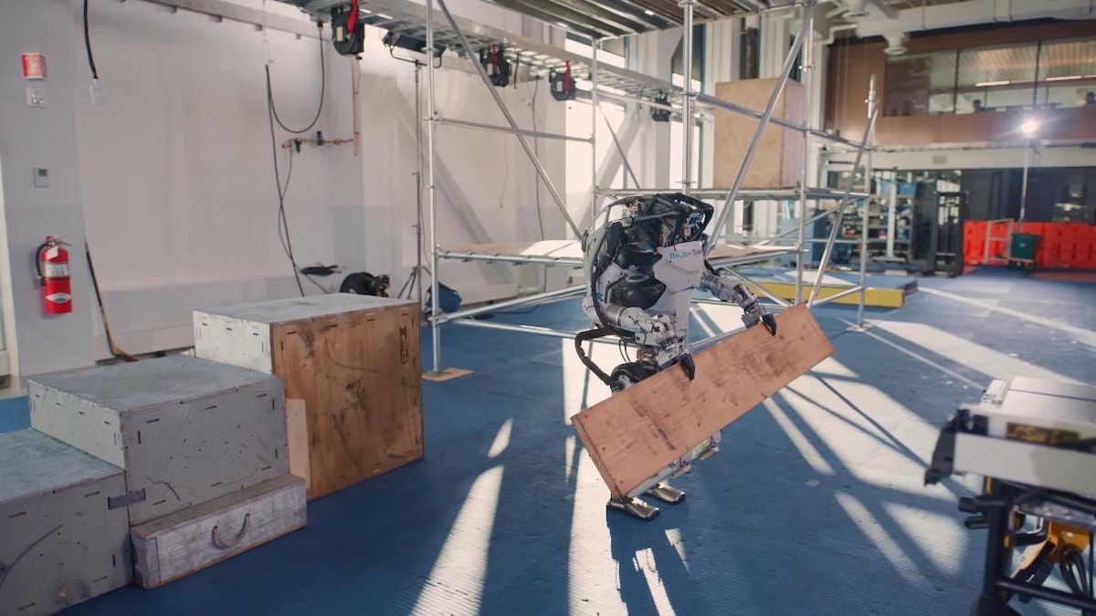 Şirket, Atlas robotunun inşaat parkurunda hünerlerini sergilediği yeni bir video yayınladı. Atlas, test amacıyla kurulan bir inşaat iskelesi üzerinde ilerleyerek takım çantasını fırlatıyor ve kutuları iterek kendine yol açıyor.