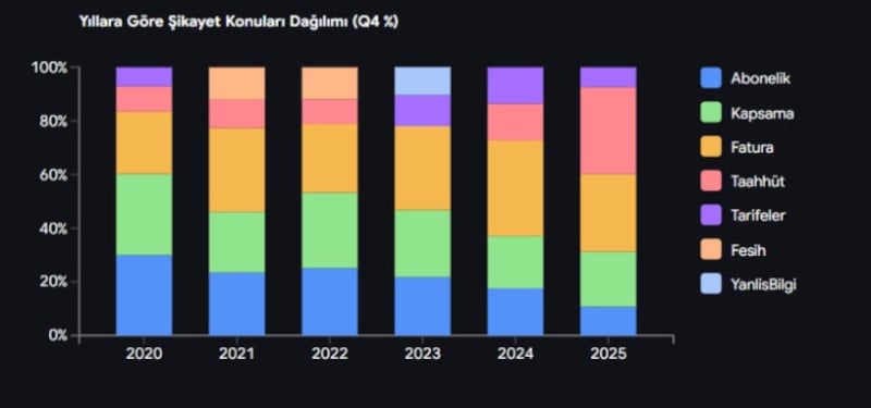 Raporda en dikkat çeken verilerin başında, 2024 yılında yüzde 19,50 seviyesinde olan kapsama alanı ve hizmet kalitesi şikayetlerinin 2025 sonunda yüzde 20,40'a yükselmesi yer alıyor.