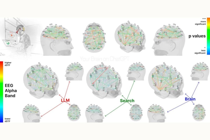 Sonuçlar, ChatGPT kullanan grubun en düşük beyin etkileşimine sahip olduğunu ve "nöral, dilbilimsel ve davranışsal düzeylerde sürekli olarak düşük performans gösterdiğini" ortaya koydu.