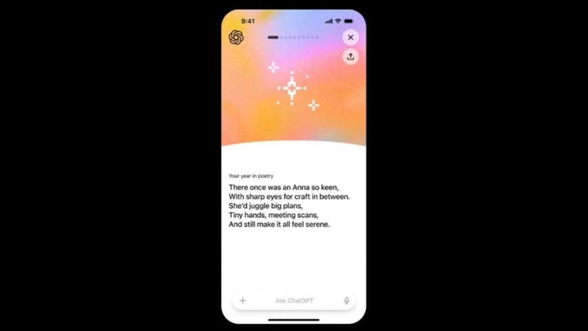 Yıl sonu özetlerinin bir diğer öne çıkan yönü ise kişisel dokunuşlar. ChatGPT, kullanıcıların ilgi alanlarına göre özel bir şiir yazarken, yıl boyunca yapılan sohbetlerden ilham alan yapay zeka destekli bir görsel de oluşturuyor.