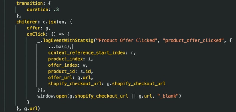 Kodlarda "buy_now" (hemen satın al), fiyat ve gönderim alanları, ürün değerlendirmeleri ve en önemlisi "shopify_checkout_url" gibi ifadelerin yer alması dikkat çekti.