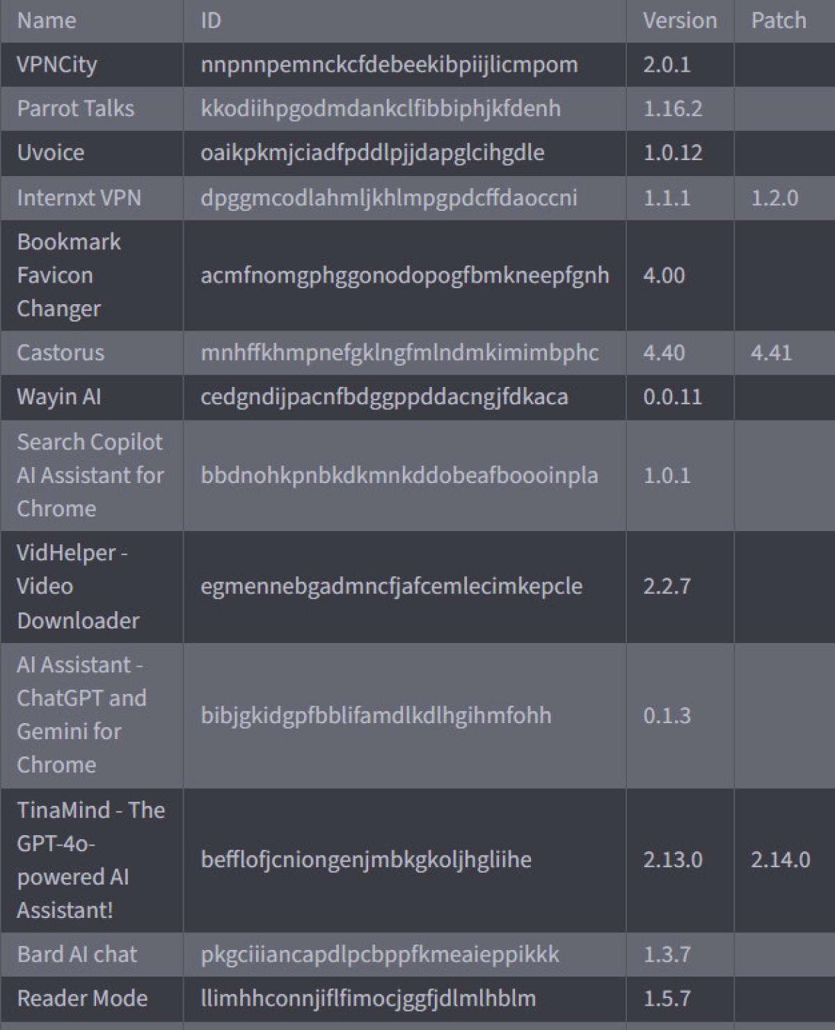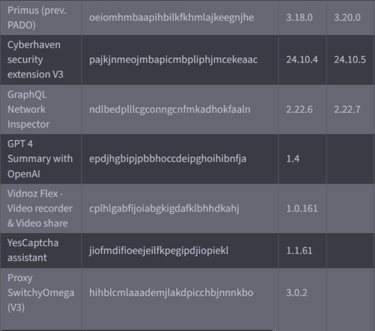 Cyberhaven eklentisinin yanı sıra, 19 farklı Chrome eklentisinin daha aynı yöntemle hacklendiği ortaya çıktı. Bu eklentilerin toplamda 1,46 milyon kez indirildiği belirtiliyor.