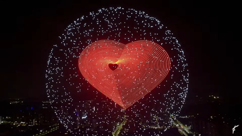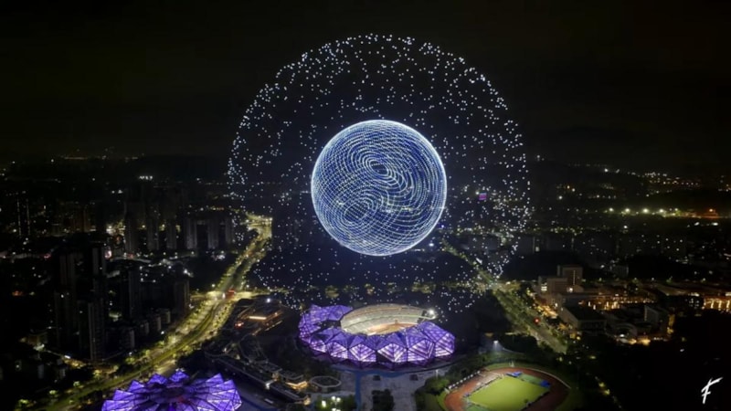 Bu eşsiz etkinlikte, binlerce drone kusursuz bir şekilde senkronize olarak hareket ederek gökyüzünde karmaşık desenler, hareketli görüntüler ve hatta üç boyutlu nesneler oluşturdu.