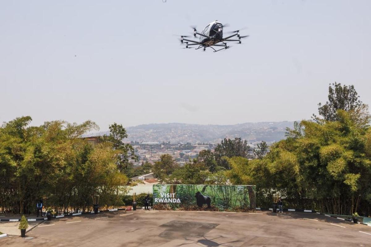 Çin'in Guangzhou kentinde bulunan EHang Holdings tarafından geliştirilen pilotsuz elektrikli kalkış ve iniş aracı (eVTOL), tarihi uçuşunu Ruanda'nın başkenti Kigali'de gerçekleştirdi.