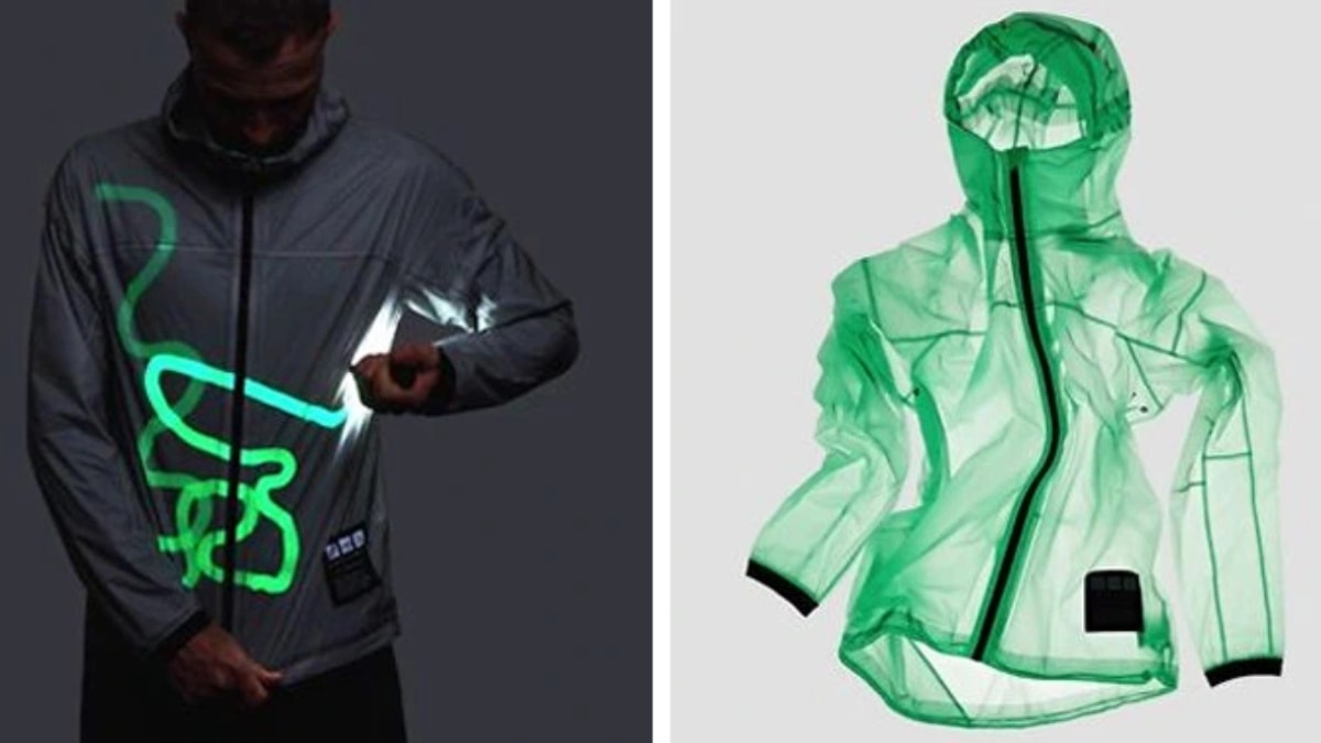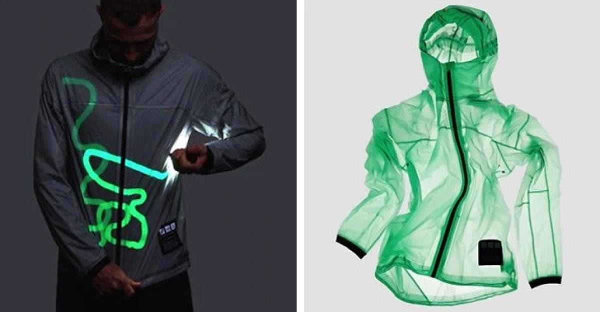 Bu güneş enerjisiyle şarj edilen ceket, yüksek duyarlılığa sahip özel bir malzemeden yapılmıştır. Bulabileceğiniz herhangi bir ışık kaynağıyla karanlıkta parlayabilir.