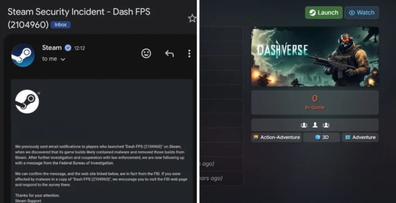 Dijital oyun platformunun çatı şirketi Valve da bu gelişmeyi doğrulayarak risk altındaki kullanıcılara, FBI destekli resmi uyarı e-postaları göndermeye başladı.