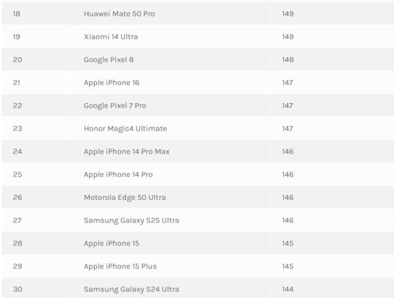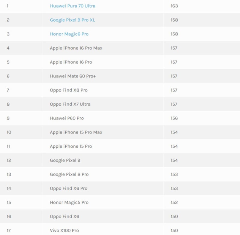 DxOMark, akıllı telefon kameralarını değerlendiren ve sıralayan önde gelen bir kuruluş. 2025 Mart ayı sıralamasına göre, Huawei Pura 70 Ultra 163 puanla zirveye yerleşti.