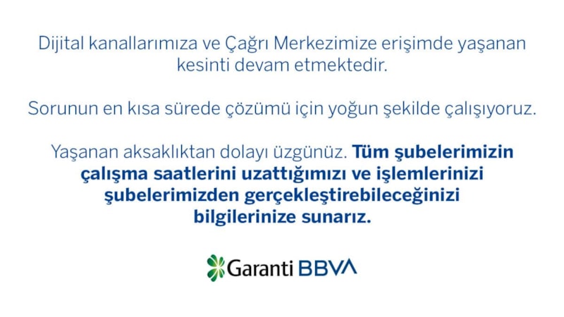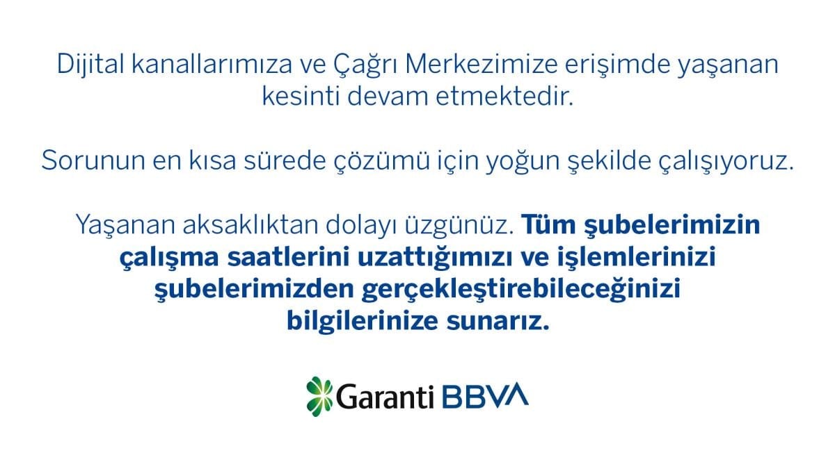 Erişim sorununun kesin nedeni henüz bilinmiyor. Garanti BBVA tarafından konuyla ilgili yapılan açıklamada, sorunun en kısa sürede çözüleceği bilgisi paylaşıldı.