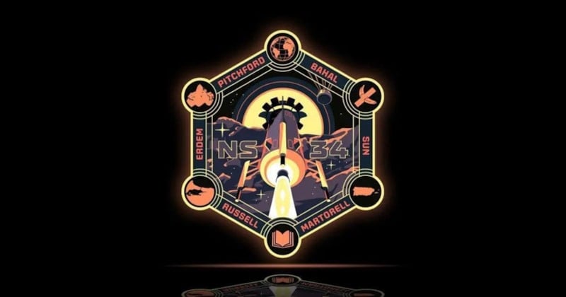NS-34 uçuşunun görev amblemi, her yolcunun kişisel hikâyesinden izler taşıyor. Gökhan Erdem’in kültürel mirası Boğaziçi siluetiyle temsil edilirken, görev numarasının 34 olması da İstanbul’un plaka koduna denk gelerek simgesel bir anlam kazandı.