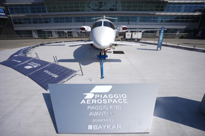 Baykar tarafından satın alınan Piaggio Aerospace'in, "Gökyüzünün Ferrari’si" olarak anılan P.180 Avanti EVO uçağı, 17. Uluslararası Savunma Sanayii Fuarı'nda (IDEF 2025) sergilendi.