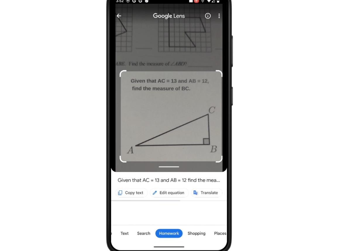 Matematik ve fizik sorularının dışında Google, geometri sorularını da çözebiliyor. Örneğin Google Lens, üçgenleri tanıyabiliyor ve çözümleri yine adım adım gösterebiliyor.