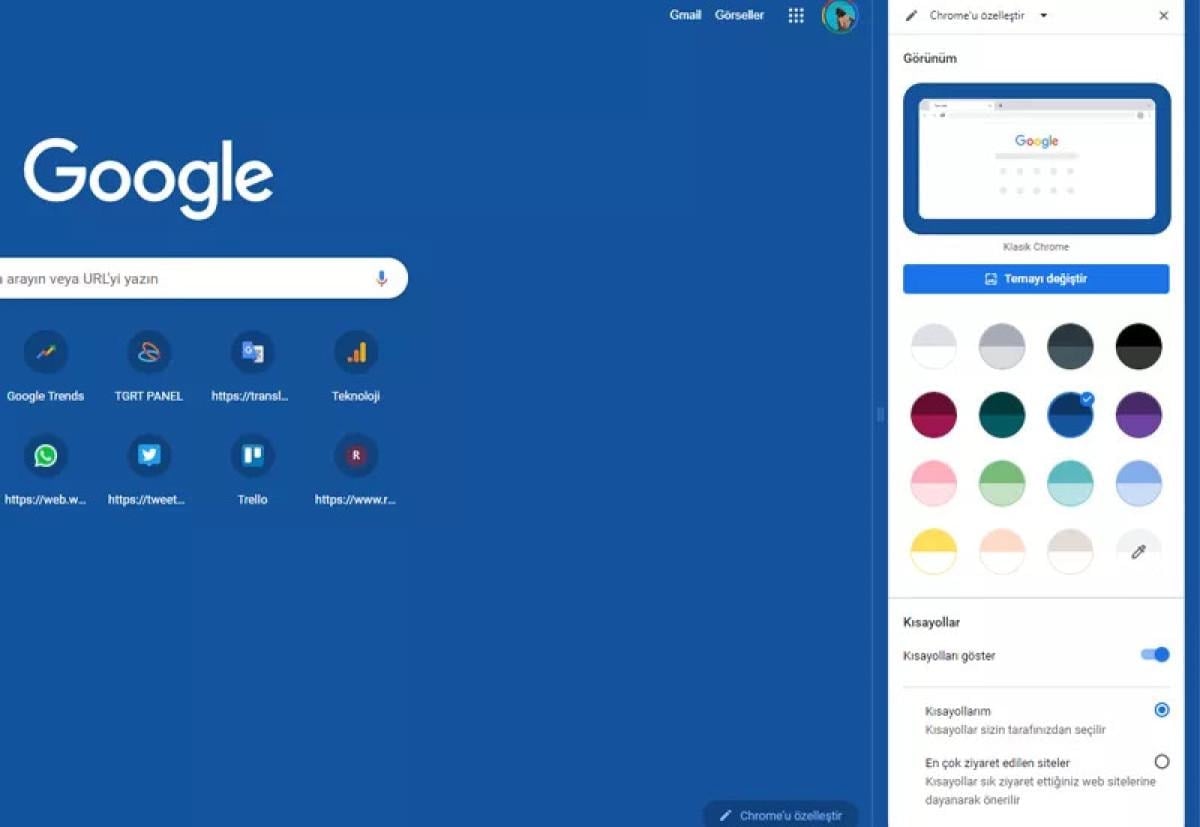 Yeni yan panele ulaşmak için Chrome’da yeni bir sekme açmanız ve sağ alt köşede bulunan “Chrome’u Özelleştir” simgesine tıklamanız yeterli.