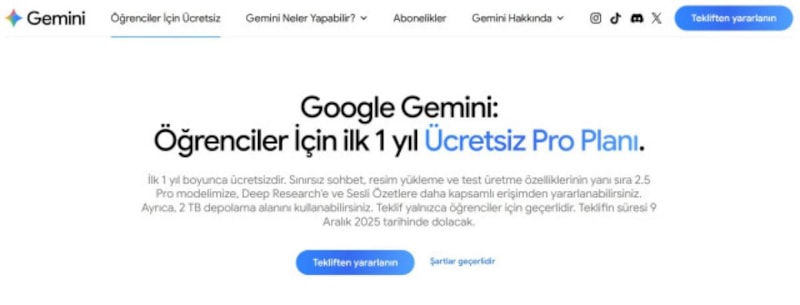 Başvurular, Google Gemini Students sayfası üzerinden gerçekleştirilecek.