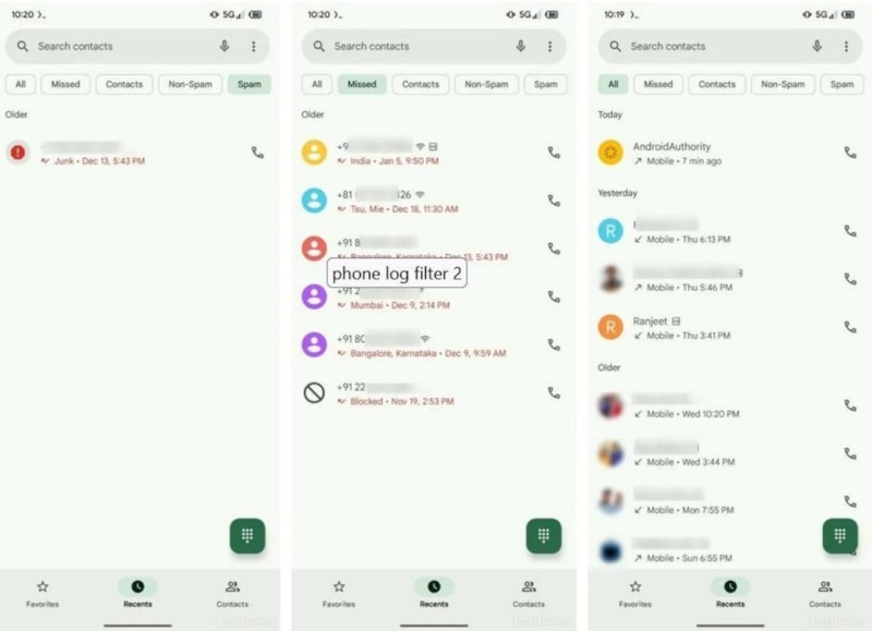 Google, Telefon uygulamasına yeni sekmeler ekliyor. Bu sekmeler sayesinde, kullanıcılar arama geçmişlerini Tümü, Cevapsız, Kişiler, Spam Olmayan ve Spam gibi kategorilere göre filtreleyebilecekler.