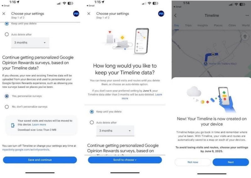 Google, kullanıcılara 9 Haziran'a kadar Zaman Çizelgesi ayarlarını güncelleme ve verilerini koruma seçeneği sunuyor.