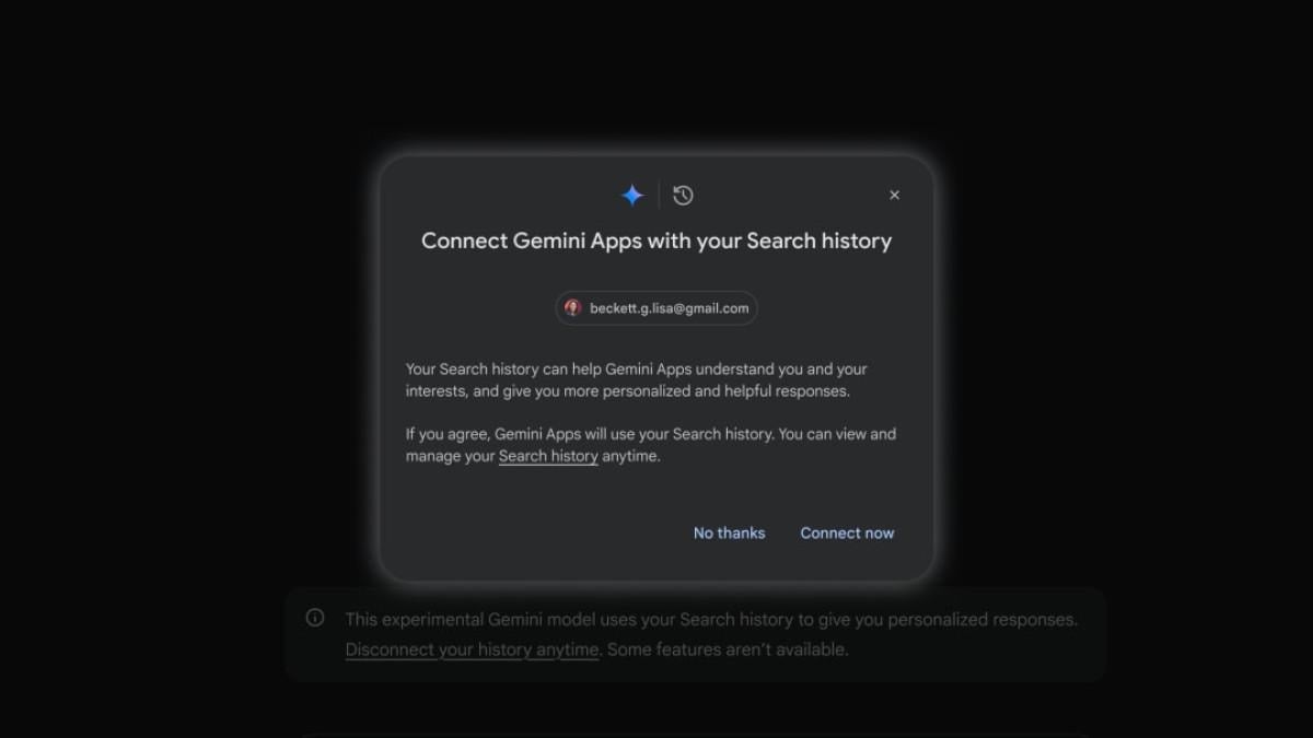 Google, yapay zeka alanındaki rekabette öne çıkmak için Gemini'yi sürekli geliştiriyor. Şirketin en son yeniliği, Gemini'nin arama geçmişinizi kullanarak size özel yanıtlar verebilmesi.