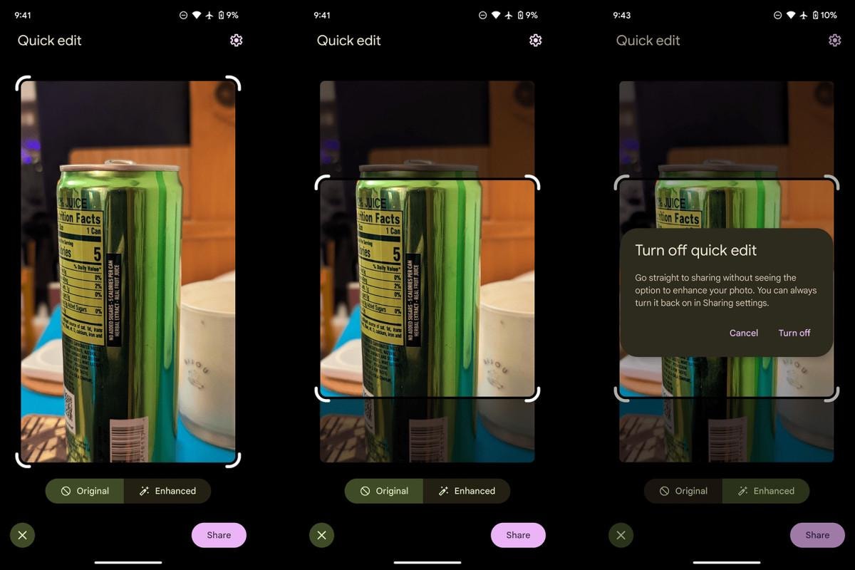 Ancak, kullanıcı fotoğrafını Google Mesajlar veya WhatsApp gibi farklı bir uygulama üzerinden paylaşırsa bu değişiklikler korunmuyor, böylece kullanıcılar düzenlemelerin nerede saklanacağı konusunda kontrol sahibi oluyor.
