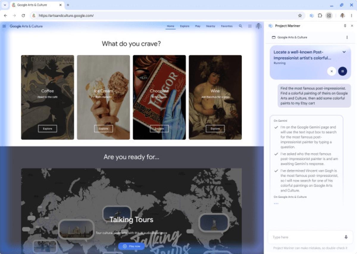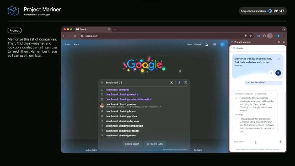 Google, Mariner'ın özellikle insanlar için sıkıcı ve zaman alıcı olabilen görevlerde yardımcı olabileceğini belirtiyor.