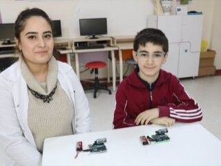 Yozgat Çözüm Koleji öğrencisi Metehan Selvi, bilişim teknolojisi öğretmeni Büşra Karabacak'ın desteğiyle, engelli bireylerin yürüme esnasında önlerine çıkan engelleri önceden haber veren "Engel Algılama Cihazı" projesi hazırladı.