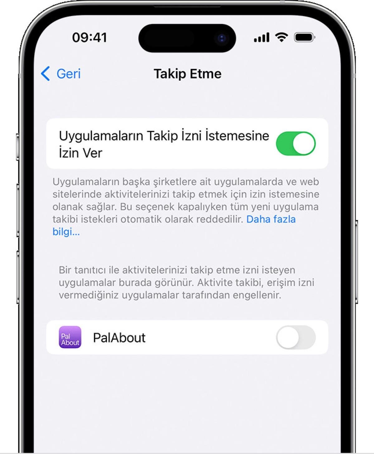 Belirli bir uygulama için takip iznini kapatmak veya açmak üzere dokunun. Dilerseniz bu özelliği tamamen kapatabilirsiniz.
