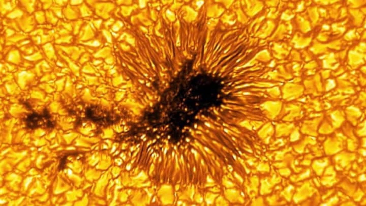 Yayınlanan fotoğrafta, Güneş'in iç atmosferindeki kıta büyüklüğünde koyu renkli güneş lekeleri net bir şekilde görülüyor.