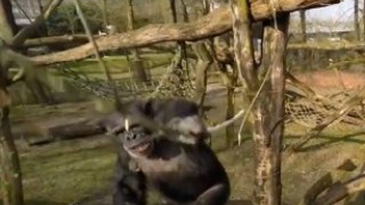 Hollanda'da şempanze drone'u düşürdü İZLE