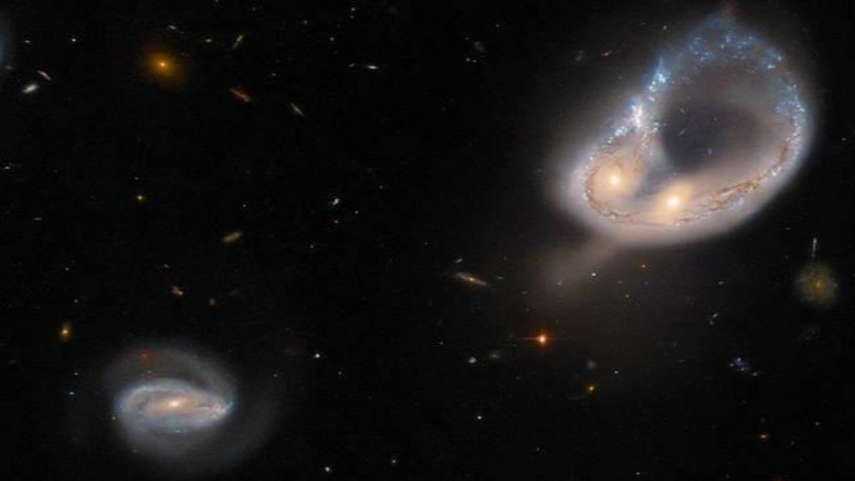 670 milyon ışık yılı uzaklıkta gerçekleşen ve iki galaksinin birleşmesine sebep olan olay, Hubble'ın kamerasına yansıdı.