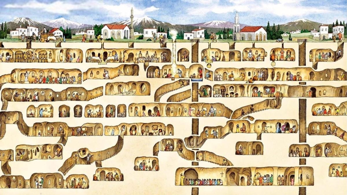 MÖ 2000 gibi erken bir tarihte inşa edilen 18 katlı tünel ağı, 20 bin kadar insanı barındıracak şekilde inşa edilen kiliseler, ahırlar, depolar ve evlerden oluşuyor.