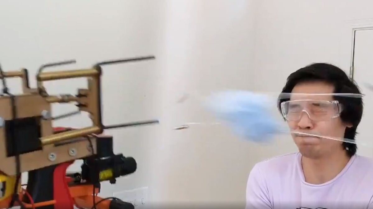 YouTuber Allen Pan, bu duruma tepki olarak dikkat çeken bir alet geliştirdi. Yeni cihaz, tıpkı bir silah gibi insanların yüzüne sert bir şekilde maske fırlatabiliyor.