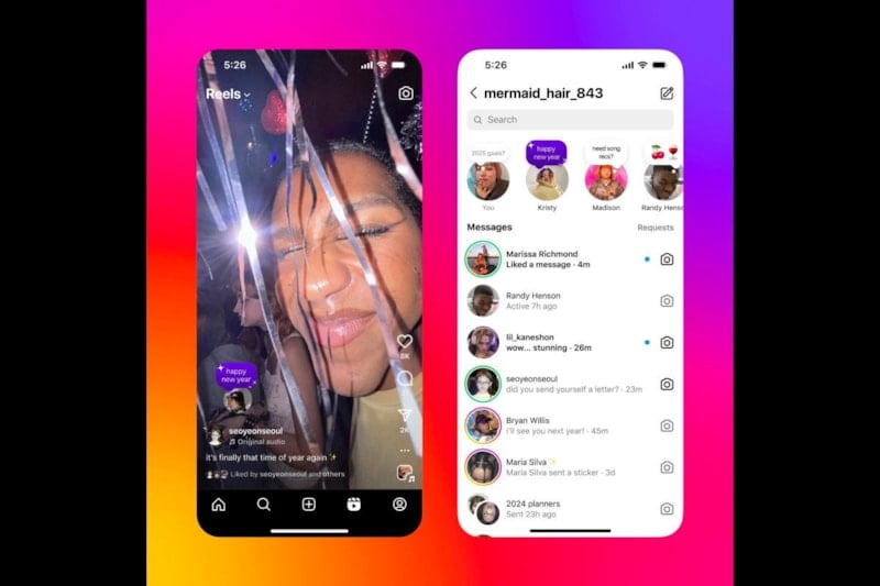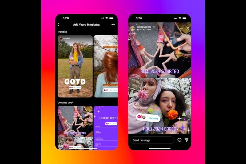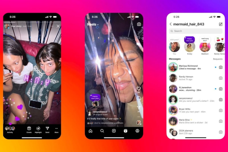 Instagram, yeni yıla özel Add Yours şablonları, "Yeni Yıl" yazı tipi, "Geri Sayım" metin efekti ve DM'ler için tatil temalı sohbet temaları gibi özellikler ekledi.