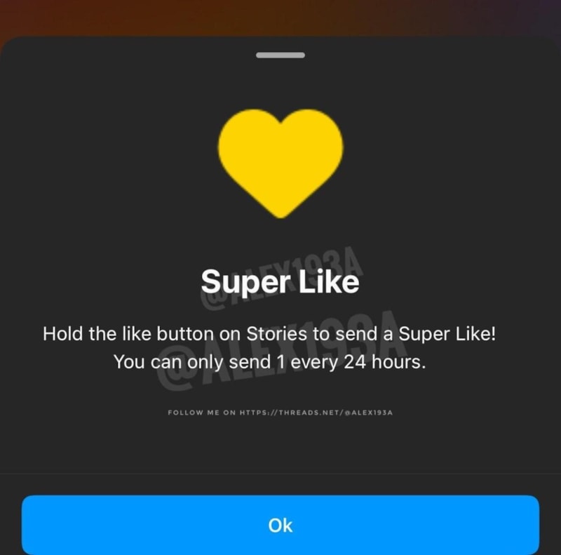 Instagram’ın yeni özelliği Hikayeler’de kullanılacak. Kullanıcılar, bir hikayede kalp şeklindeki beğen butonuna basılı tutarak "Süper Beğeni" gönderebilecek.