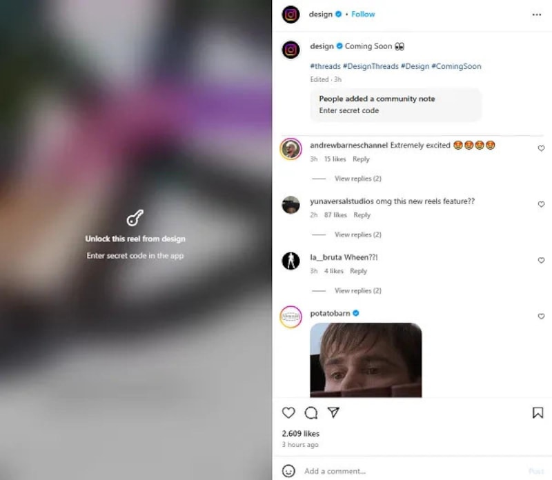 Kullanıcılar, kilitli bir gönderiyle karşılaştıklarında içeriği görüntüleyebilmek için "Gizli kodu girin" uyarısıyla karşılaşıyor.