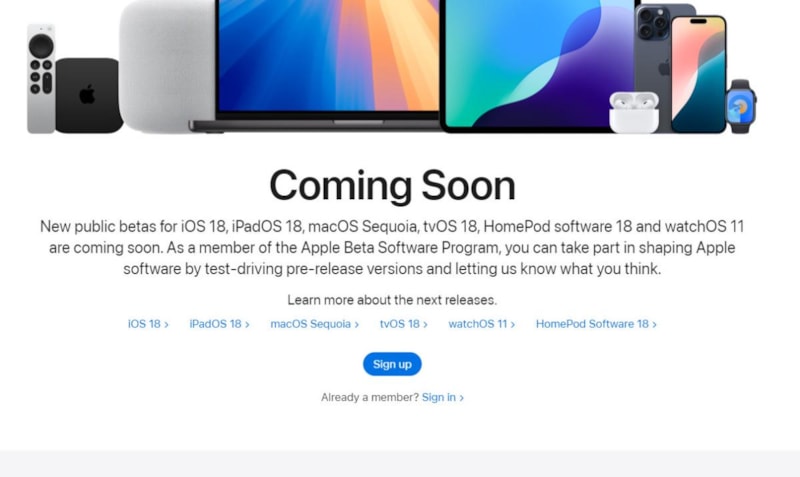 Bunun için telefondan tarayıcınızı açın ve beta.apple.com adresine girin. Sign Up butonuna dokunarak Apple kimliğinizle giriş yapın.