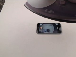 Görüntülerde bir masa üzerinde bulunan iPhone 6'nın üzerine sıcak ütü ile 10 saniye bastırılıyor. Daha sonra iPhone 6'nın ön kamerası açılarak ütü basma işlemi devam ediyor.