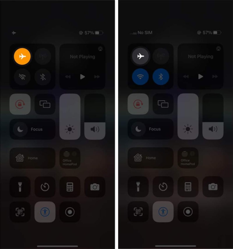 Denetim Merkezini açın → Uçak simgesine dokunun.