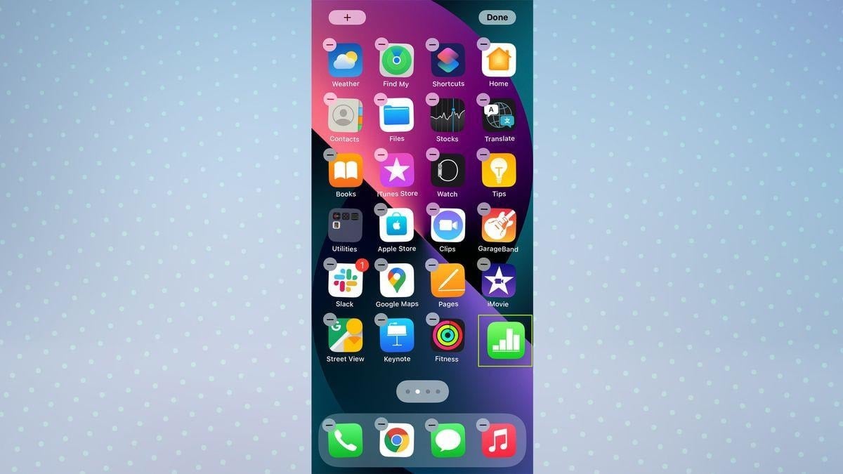 Tüm uygulama simgeleriniz kıpırdamaya başlayana kadar ana ekranda herhangi bir yere basılı tutun.