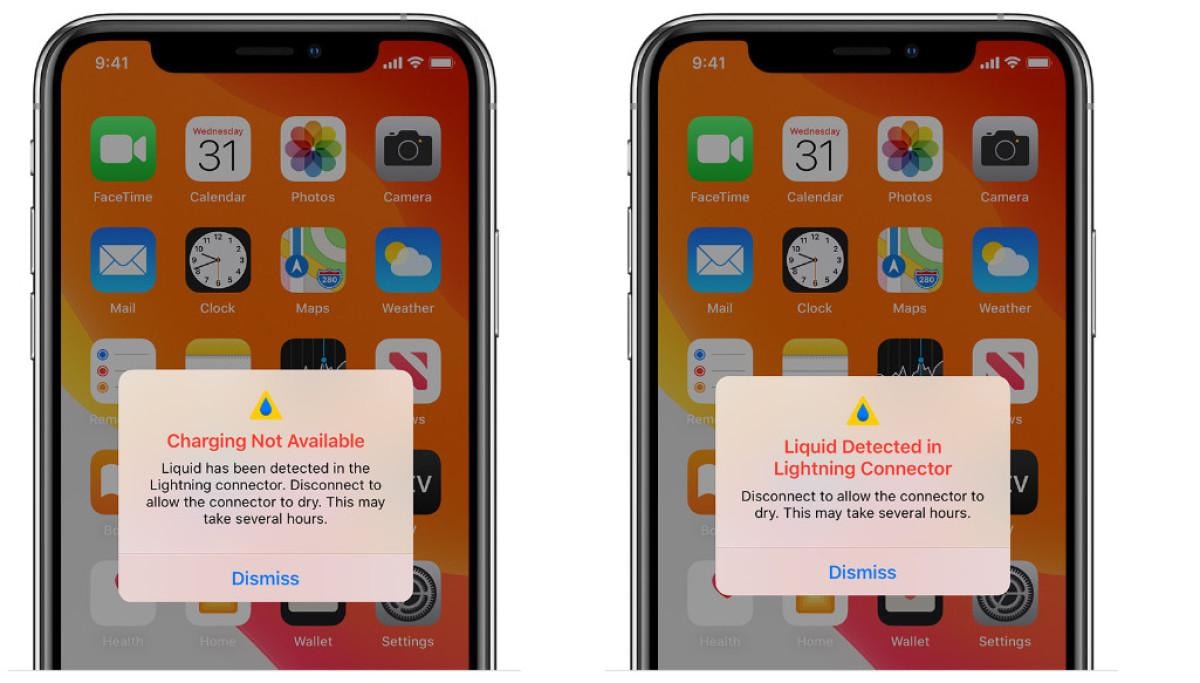 Aşağıdaki uyarılardan birini görüyorsanız iPhone'unuz Lightning bağlantı noktasında, Lightning kablosunda veya Lightning aksesuarında sıvı bulunduğunu algılamıştır.