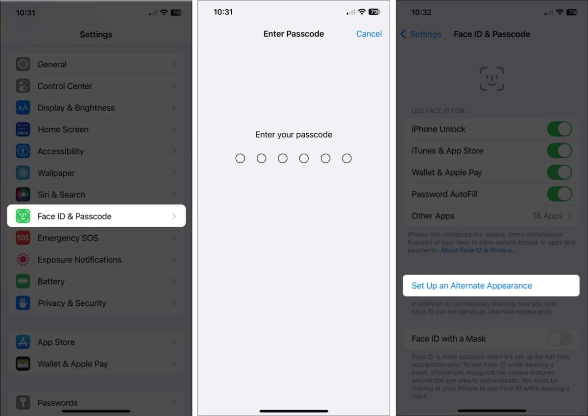 iPhone'unuzda başka bir Face ID ayarlayarak, görünümünüzü değiştirdiğinizde veya eski haline döndürdüğünüzde bile telefonunuzun sizi tanımasını sağlayabilirsiniz.