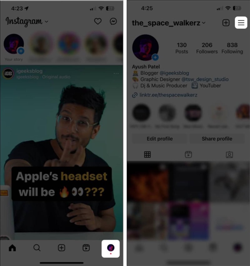 Instagram'ı açın ve sağ alttaki profil resminize dokunun.