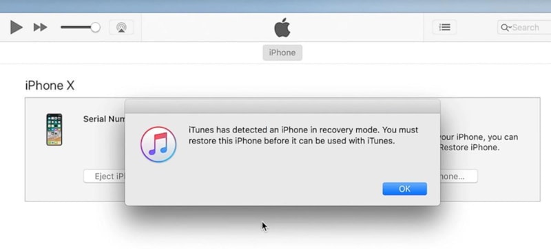 Şimdi açılır pencerede Tamam'ı tıklayın ve iPhone'u Geri Yükle'yi tıklayın.