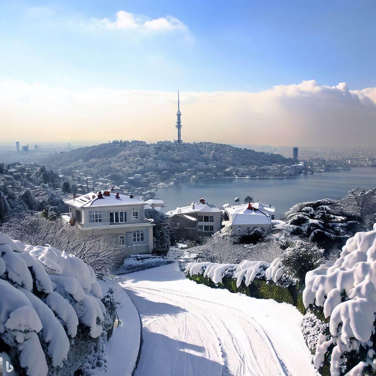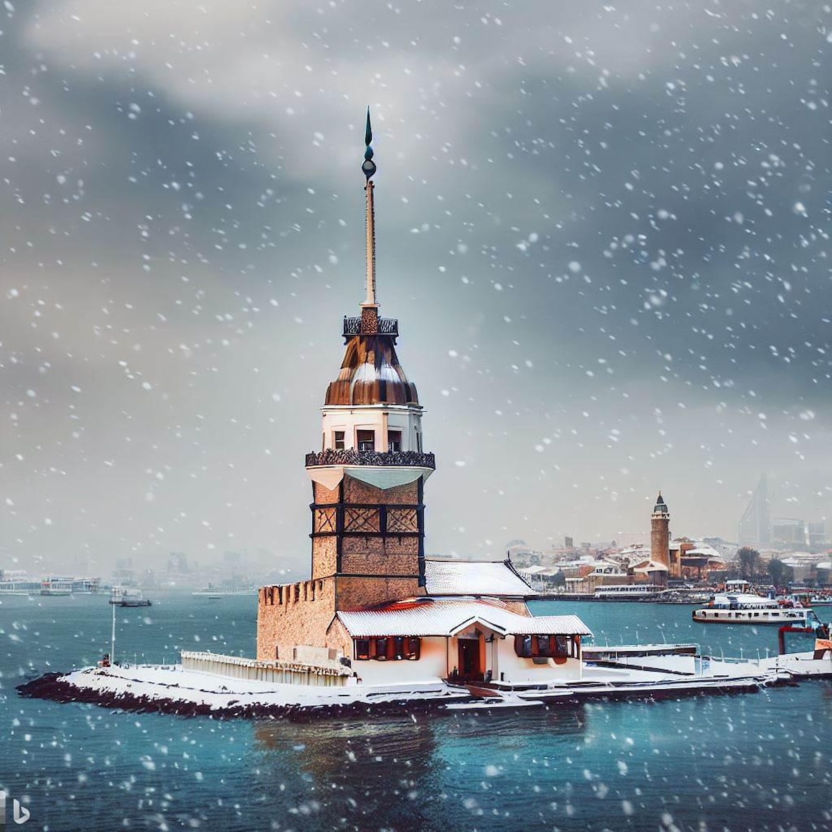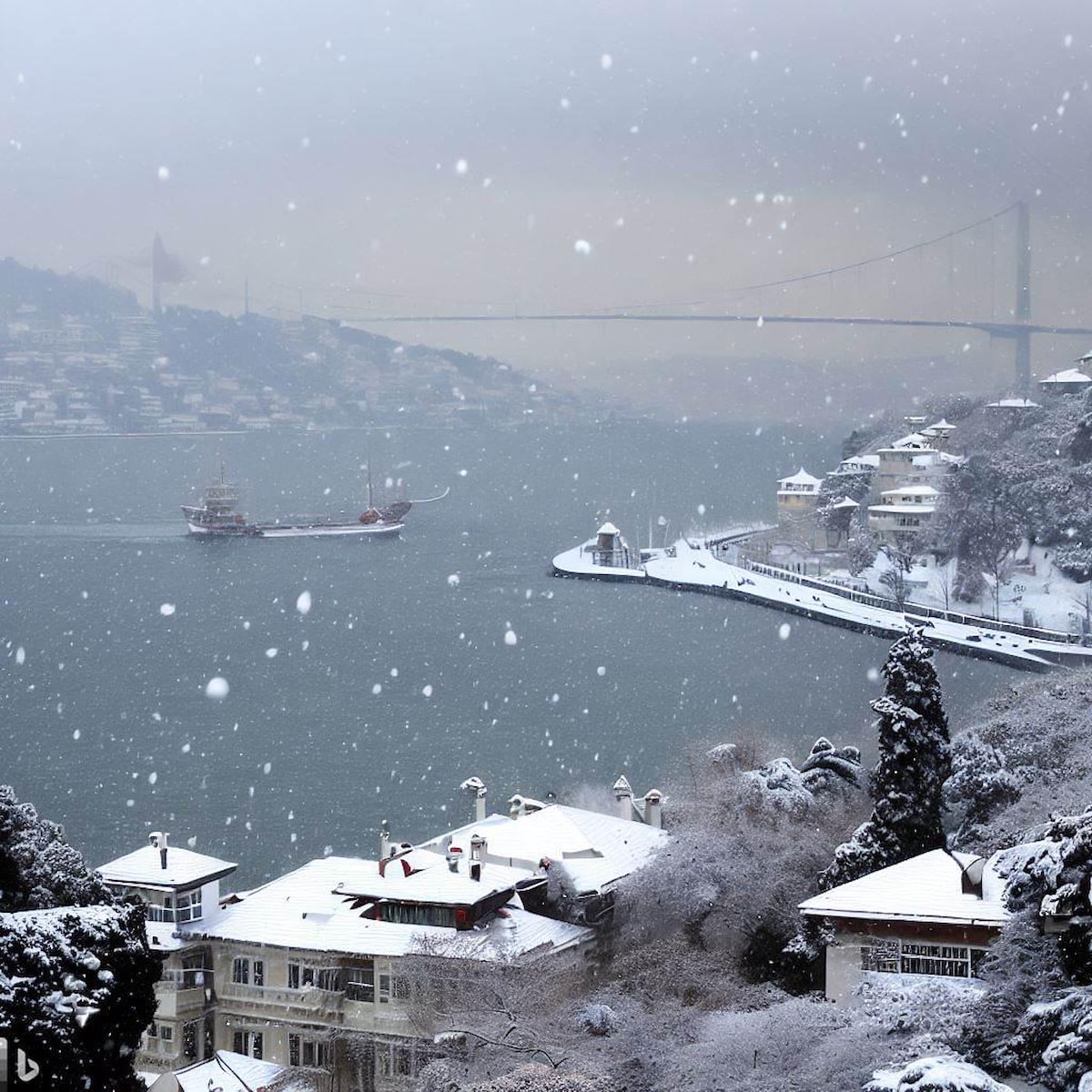 Biz de İstanbul'u kar manzarasız bırakmak istemedik ve DALL-E'ye başvurarak ondan İstanbul için kar manzaraları oluşturmasını istedik.